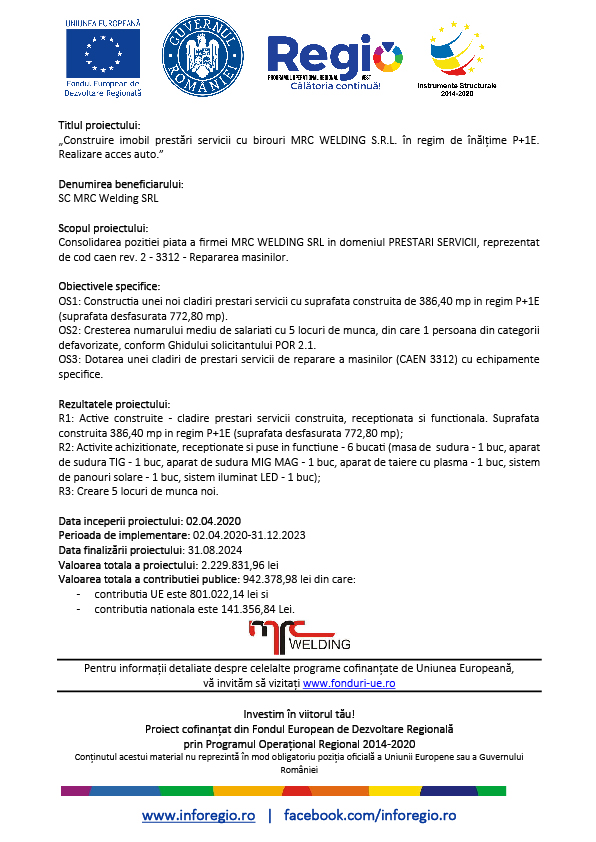 O firmă cum ar trebui să fie toate : seriozitate, promptitudine, calitate. La magazinul lor găsiți tot ce are legătură cu sudura plus service.Mihai CsiszarClient MRC Welding